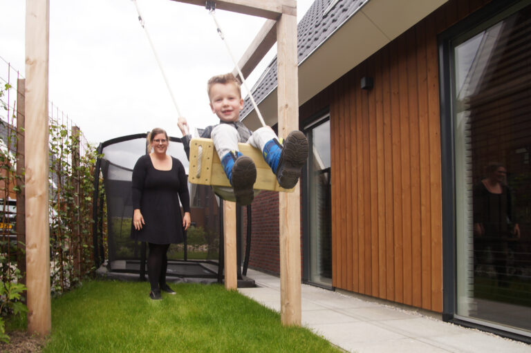 Het wonen in Norg in project De Hazelaar bevalt Wilfred en Cécile erg goed. "Norg is een levendig dorp. Er is een basisschool en een supermarkt en het hele jaar door kleuren toeristen de straten'', vertellen ze. En Groningen, waar beiden werken ligt op maar een half uurtje rijden. Met de zomer voor de deur wordt de royale achtertuin een verlengstuk van de woonkamer. Compleet met zandbak, trampoline en schommel voor Abe en Siem. Duurzaam wonen, midden in de natuur, voorzien van alle comfort, geeft zo'n heerlijk zorgeloos gevoel!
