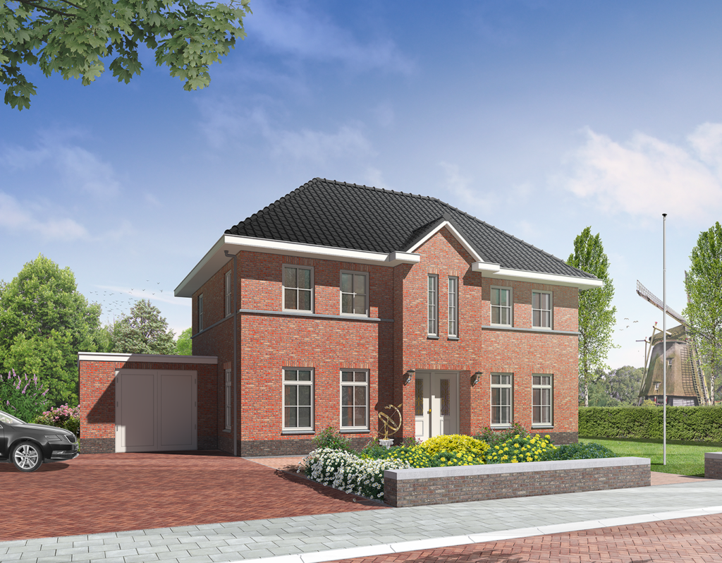 De kozijnverdeling zorgt voor een evenwichtige, klassieke uitstraling. Alles klopt in verhouding. De hoge gootlijn versterkt het beeld van een royaal herenhuis.